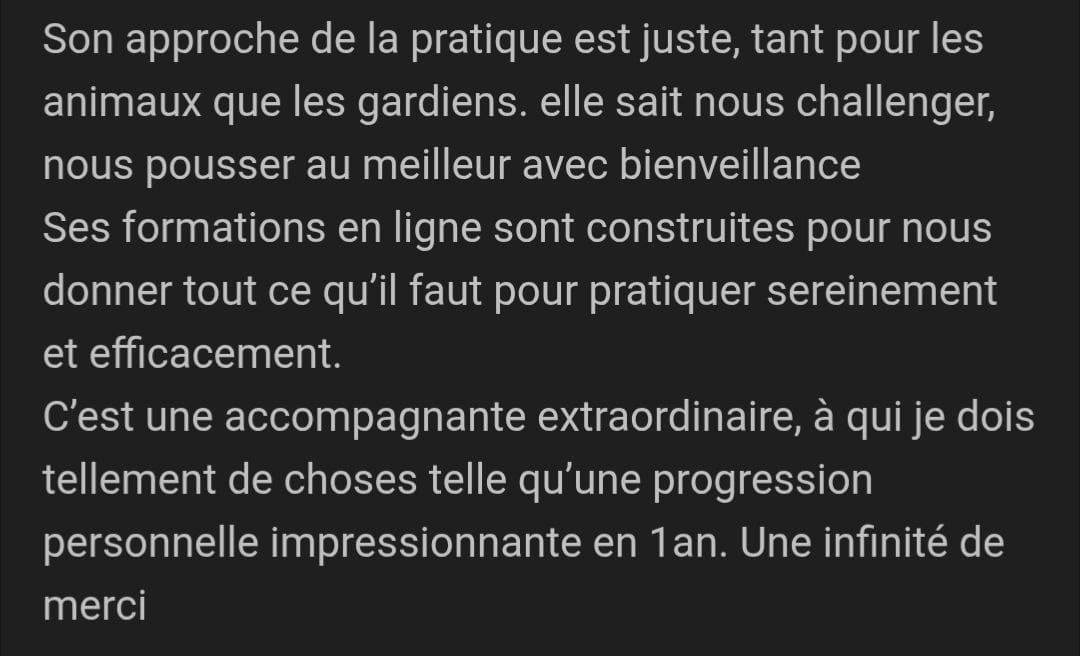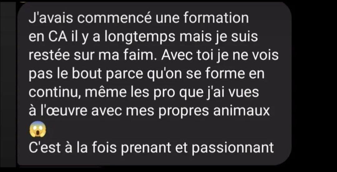 Sur Telegram : tu accèdes à un groupe pour poser tes questions et à un groupe pour t'entraîner avec des animaux confiés par des professionnels.