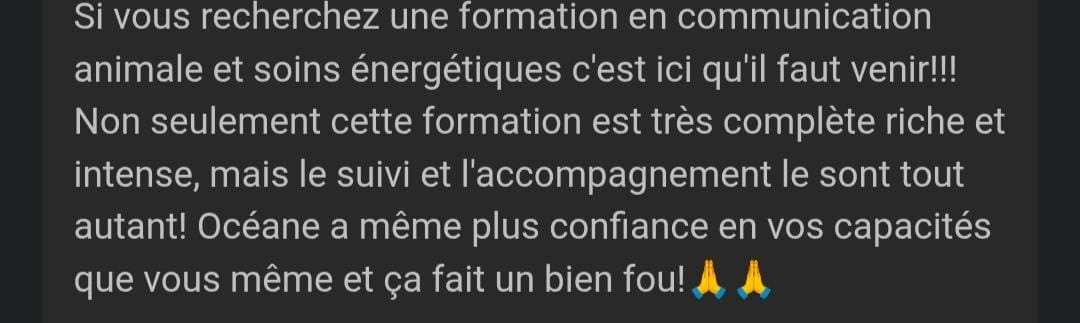 Redécouvre ton lien avec les animaux en apprenant à les écouter, les ressentir et rééquilibrer leurs énergies mais aussi à accompagner leur problématique émotionnelle et physique en soutien des vétérinaires.